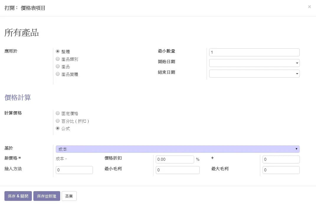 | odoo官方價格設置 | 功能說明 | 參考圖面 |