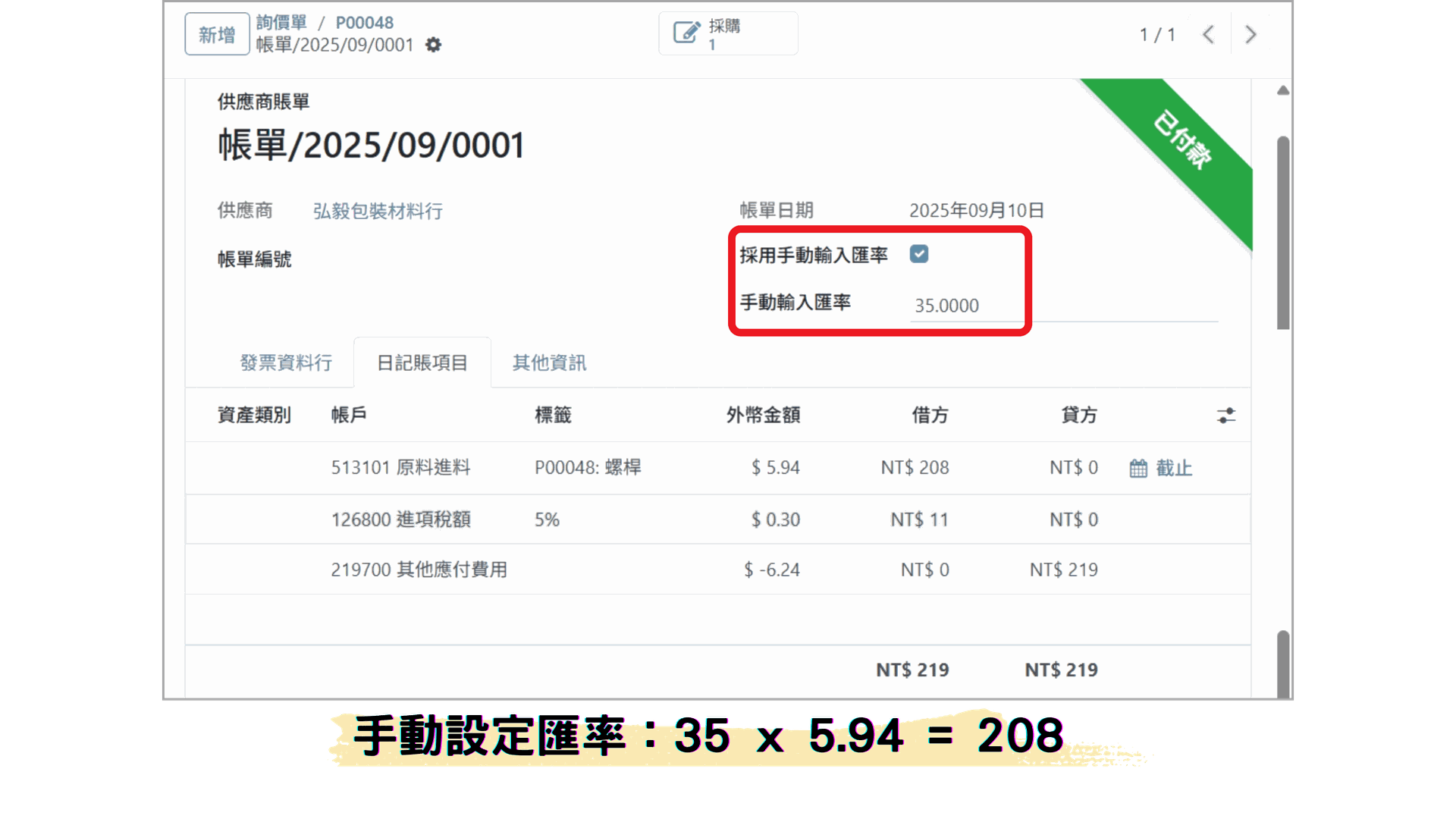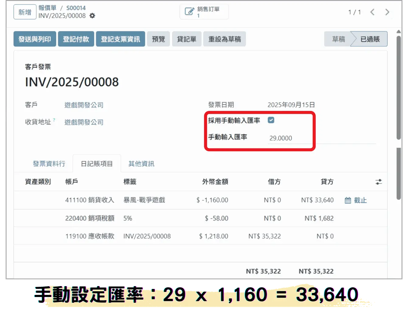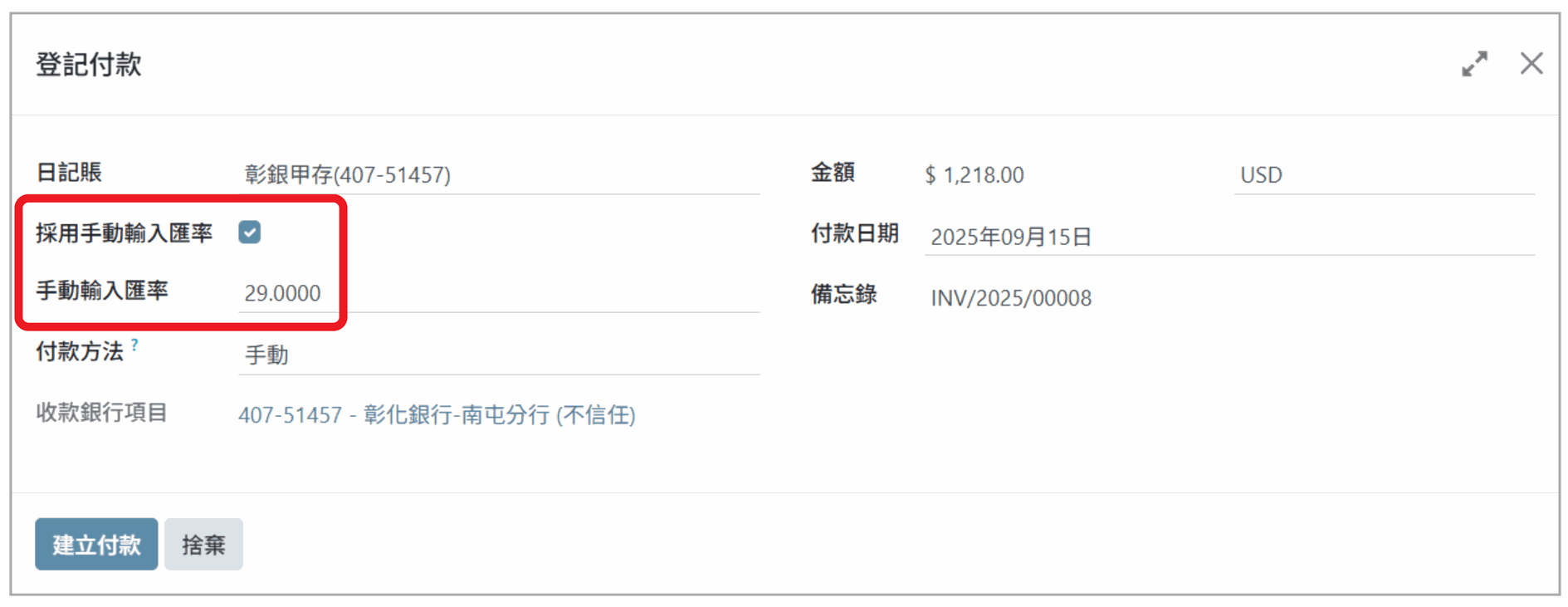小提醒:若未勾選「採用手動匯率」,系統就回到原生的匯率流程,兩者可並行、可追溯。